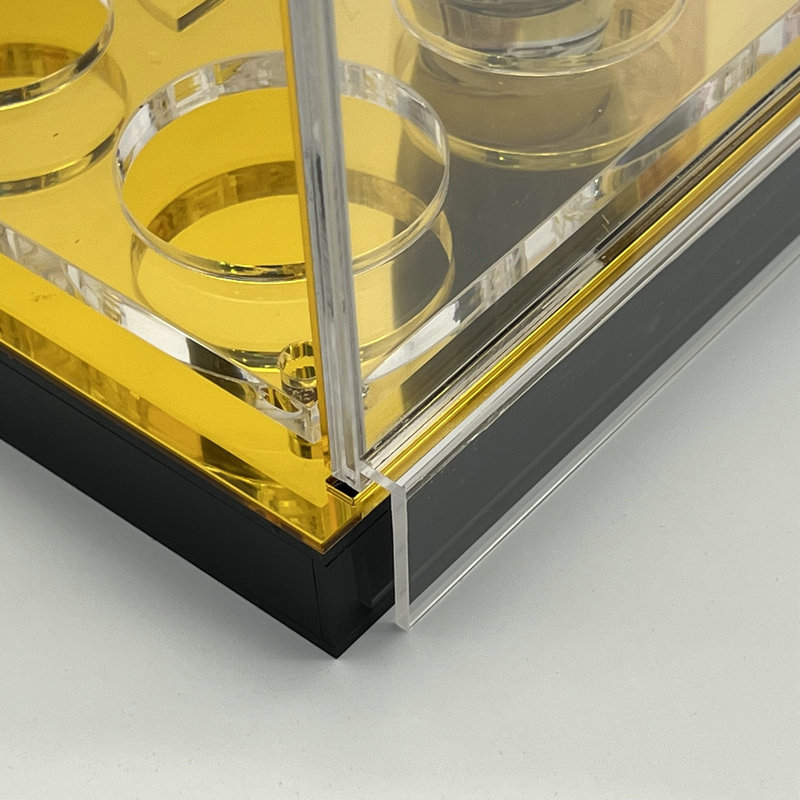 - Solid Onyx Black Base: Grounding the whole framework is a strong, opaque black acrylic base. This element offers a powerful and stylish contrast to the luminous gold. Its matte or semi-gloss coating takes in light, making the gold and the products above it appear a lot more lively. This fundamental layer adds visual weight and security, guaranteeing the display screen feels substantial and safe and secure. The crisp, clean lines and sharp edges of the black base speak to a contemporary, minimalist sensibility that is timelessly posh.