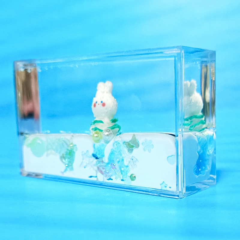 Add a splash of fun to your desk with this charming Acrylic Quicksand Ornament. Watch cute figurines float and drift in the soothing liquid. This captivating desk decor provides a relaxing visual escape, perfect for relieving stress and brightening your day. A delightful gift for any occasion