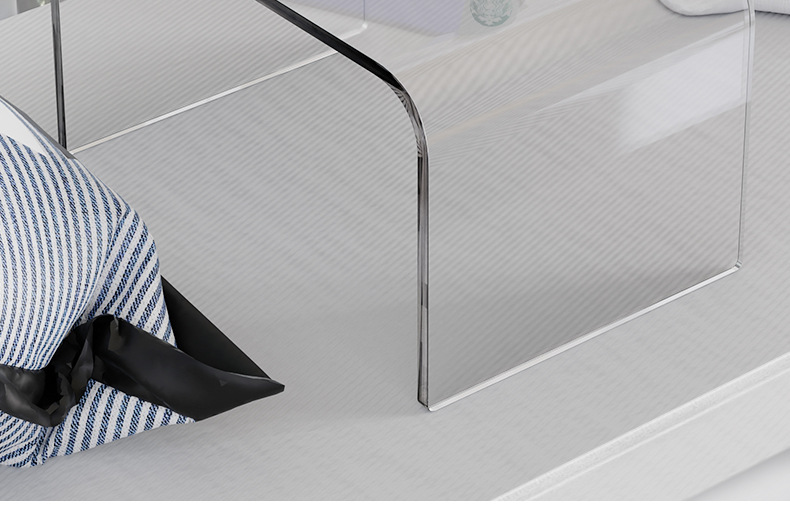 Discover minimalist Nordic elegance with our clear acrylic side table. Crafted from a single piece with a seamless waterfall curve, its “ghost” design makes any room feel larger. Perfect as a coffee table, bedside stand, or stylish display. Durable, chic, and customizable to fit your unique space.