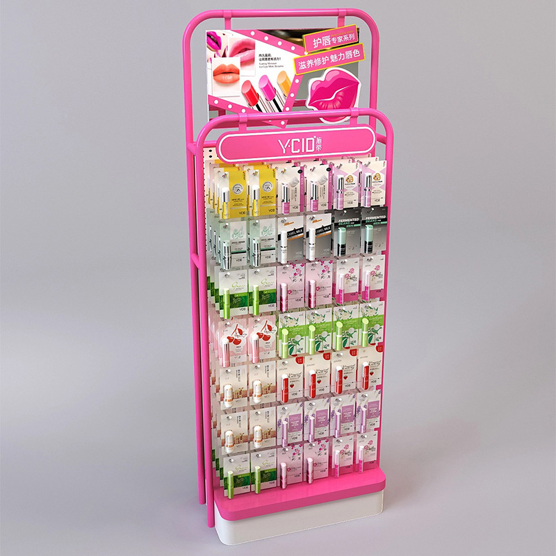 • Pegboard & Hanging Display Screens: The pink “YCIO” stand makes use of a hanging system, perfect for products in sore packs. This open, ventilated layout makes each item separately visible and easy to get hold of.