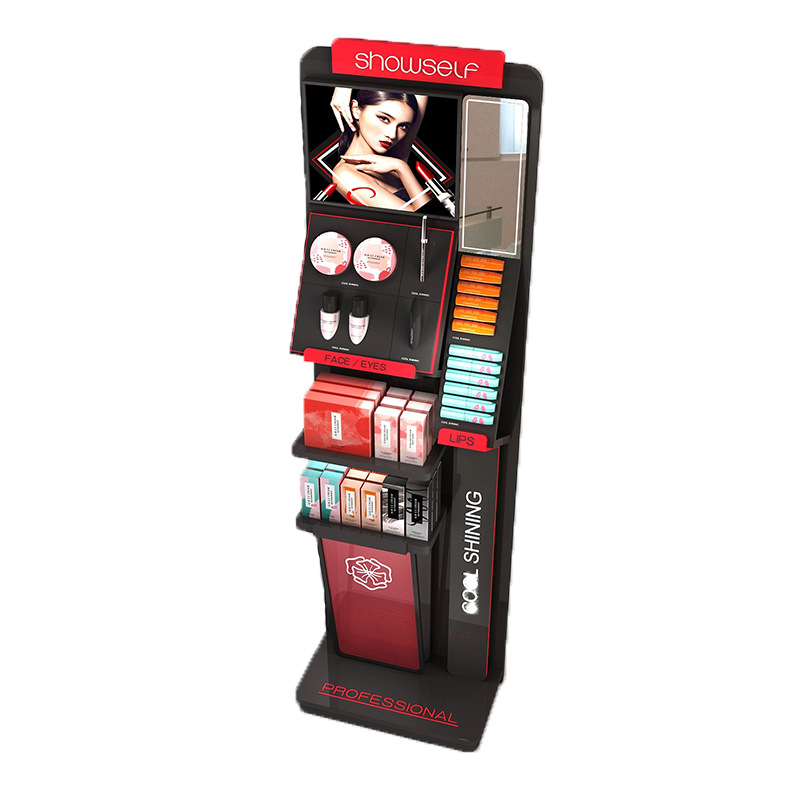 • Motivate Interaction and Test: A successful screen welcomes consumers to touch, really feel, and attempt. The “showself” stand is a masterclass in this, including a devoted mirror alongside neatly set up testers for structures, eye liners, and lipsticks. This changes passive browsing right into an active, tactile experience, dramatically increasing the chance of a purchase.