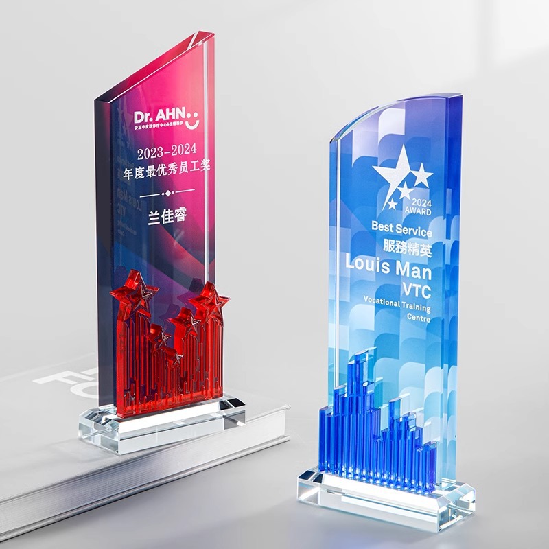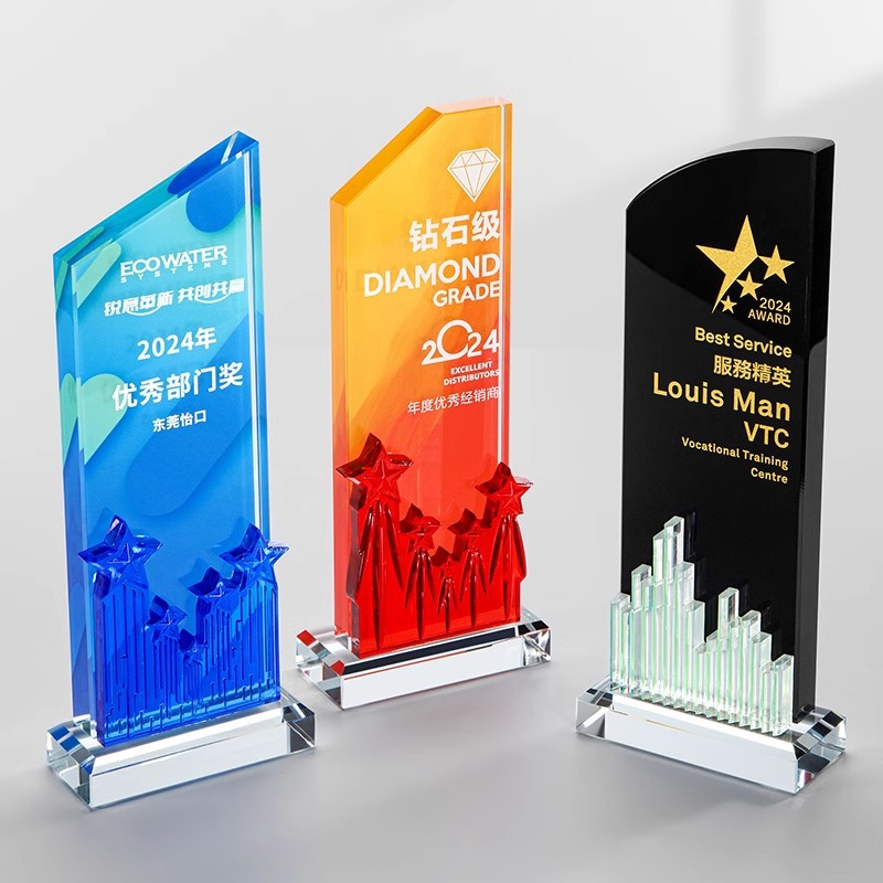 Recognize greatness with our premium custom acrylic awards. Fully personalized with your text and logo, these trophies feature vibrant colors and dynamic 3D designs. An elegant and modern choice for employee recognition, corporate events, and celebrating success.